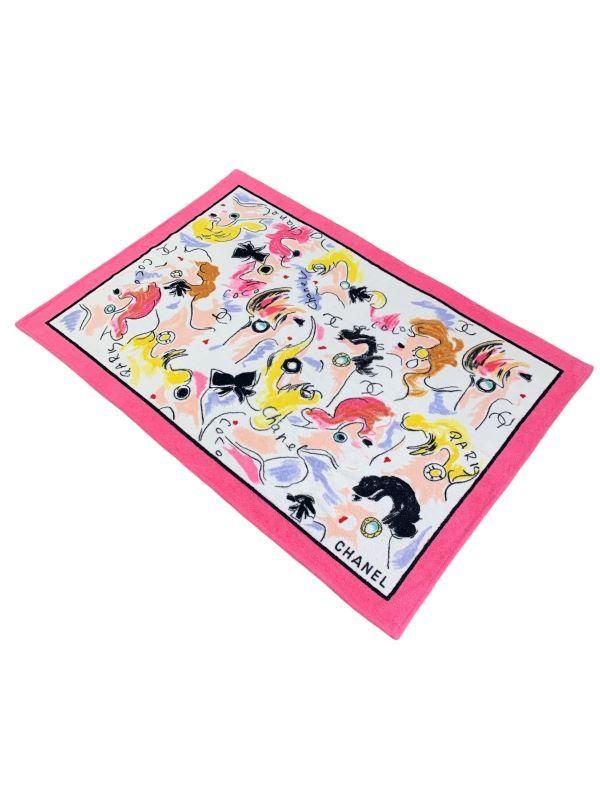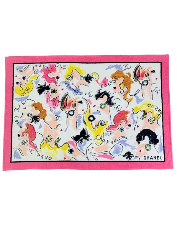 横顔やCOCO CCマーク CHANELロゴが沢山描かれた可愛いビーチタオル。