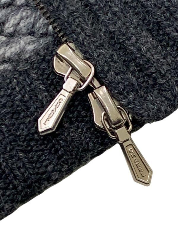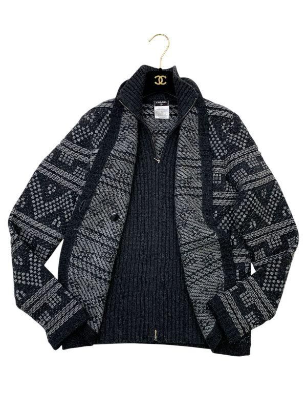セーターにカーディガンを羽織ったような重ね着風デザインのニットブルゾン。
